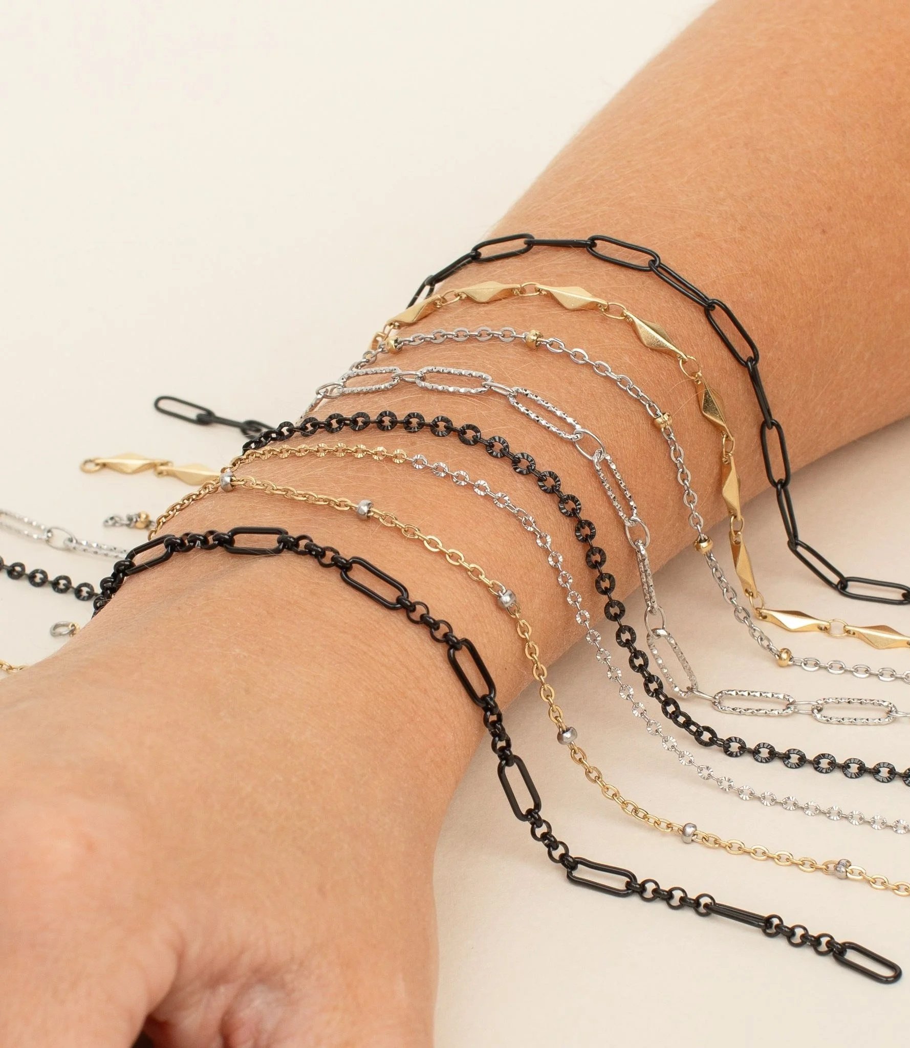Permanent jewelry is a custom-fit anklet, bracelet, or necklace designed to stay with you — effortlessly and forever. Hand-finished in gold or silver stainless steel, our chains are designed to keep their shine through workouts, showers, saunas and everyday adventures.